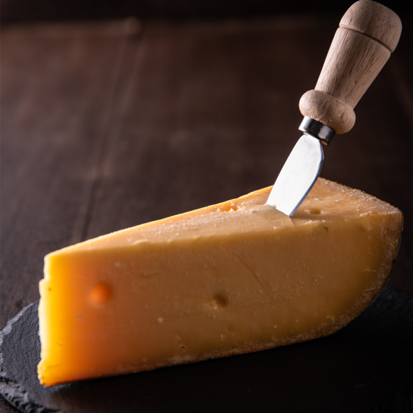 A superb cheddar-type cheese with a full flavour and warm pineapple after-taste.This cheese has been taste selected and matured on for 18 to 22 months. It has more depth and complexity with a lovely smooth lingering aftertaste, often with a hint of sweetness.